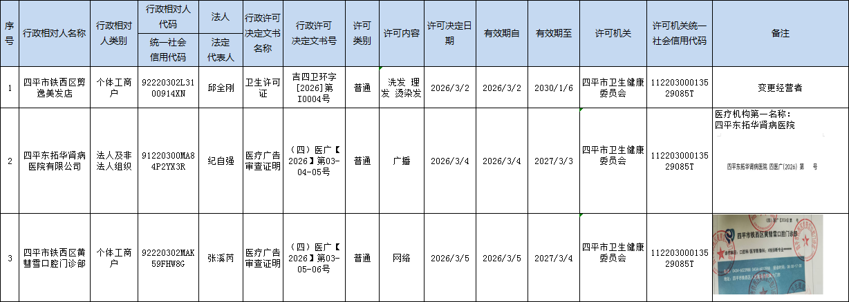 四平市卫生健康委员会行政执法公示平台