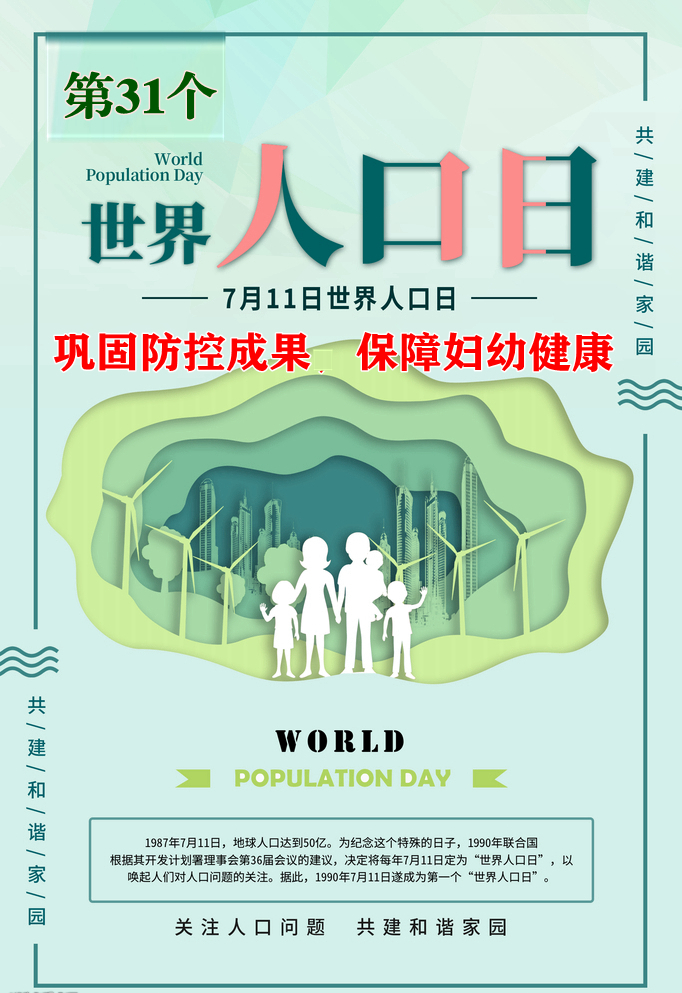 2020年7月11日是第31个世界人口日,联合国人口基金将主题确定为:“终止新冠肺炎疫情:当下如何保障妇女和女童的健康和权利”。